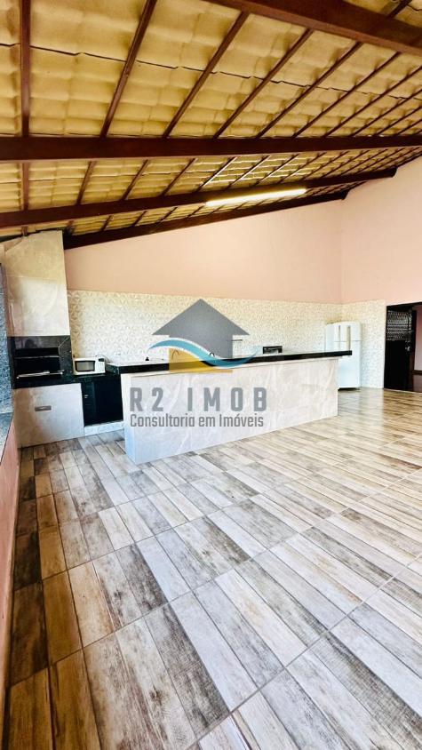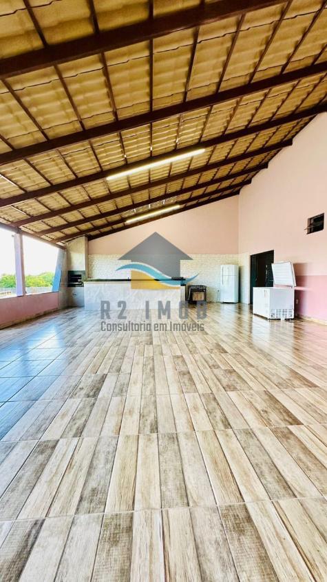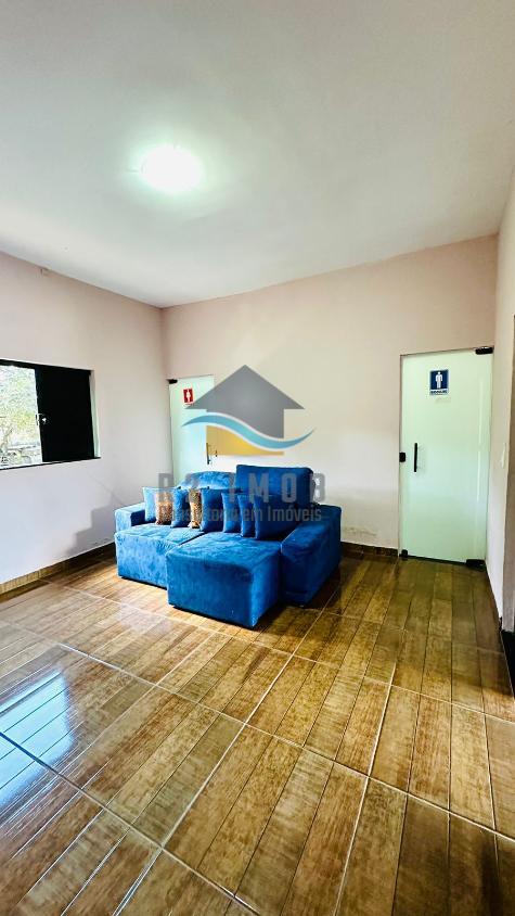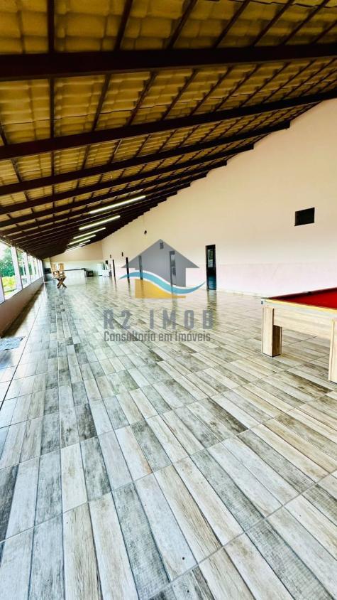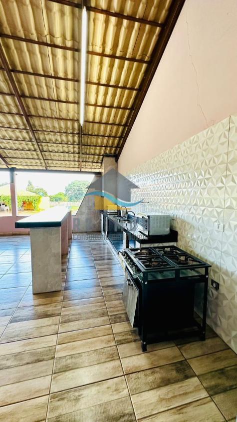 ??Quiosque com fogão a lenha, forno e churrasqueira, banheiro masculino e feminino.